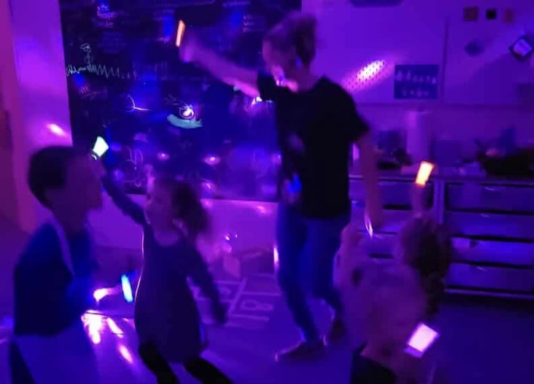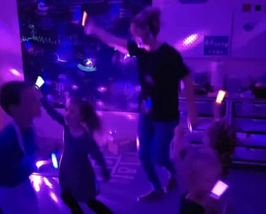 We always wrap up with a mini Dance Party, using fun lights and a glow-stick for each child, so don'f forget to add a few favourite songs to the info section of registration!
